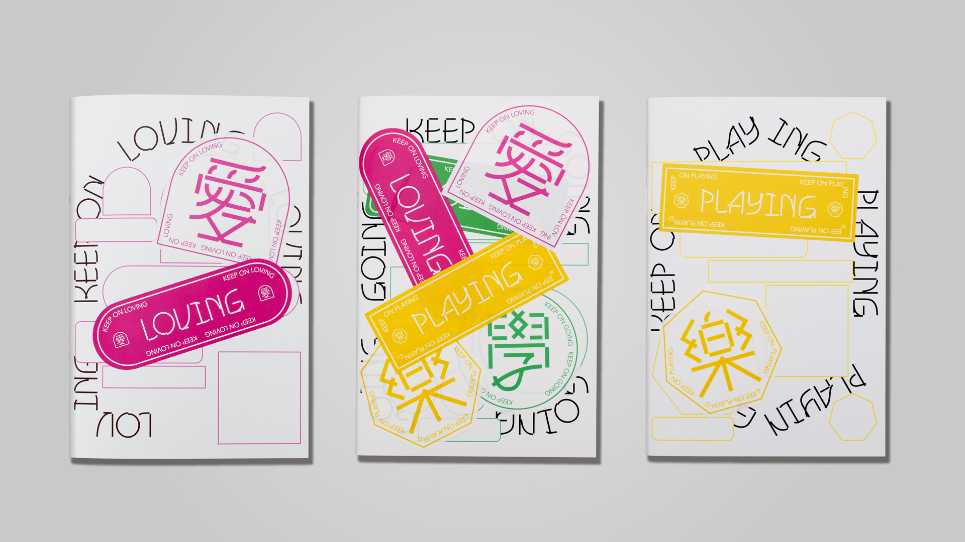 同时从各种路牌的形式中提取几何图形,设计成贴纸,这样每个人都可以用这些贴纸创造出自己的笔记本、手提袋或海报,正如学府道教育希望每个人都应有其独特的个性一样。